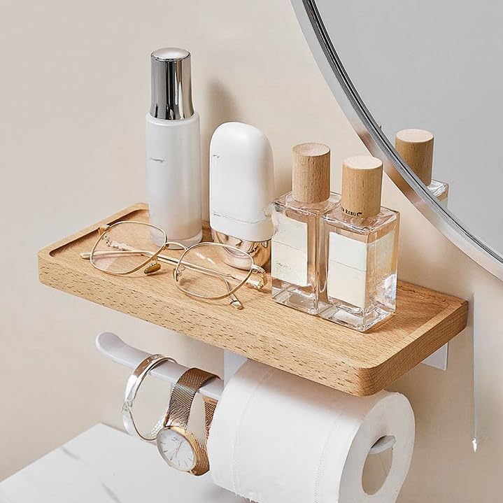 トイレットペーパーホルダー おしゃれ トイレ用品 トイレ インテリア 棚付き 北欧 シンプル 木製 ・・・