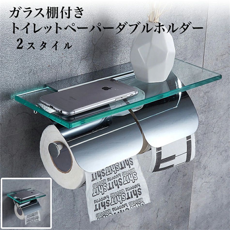 ガラス棚付きトイレットペーパーホルダー ダブルホルダー クロームメッキステンレスシルバーおすすめ か・・・
