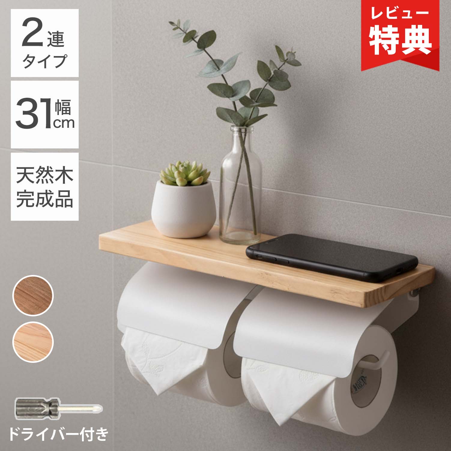 トイレットペーパーホルダー おしゃれ 2連 棚板付き 天然木 木製 完成品 トイレ用品 トイレ収納 デザイン カジュアル ホルダー ダブル トイレットペーパー シンプル