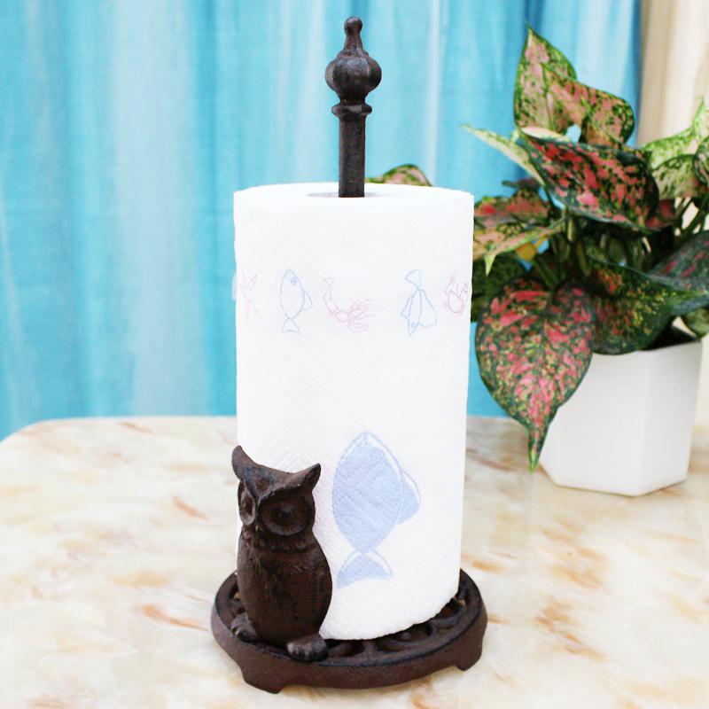 キッチンペーパーホルダー フクロウ 卓上 鋳鉄 ヨーロピアン レトロ アンティーク調 キッチンタオル・・・
