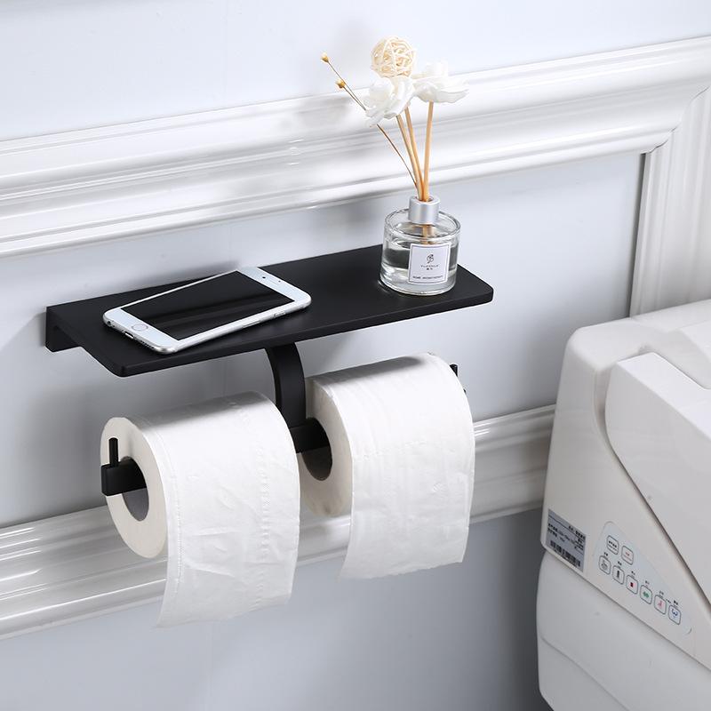 ガラス棚 付き トイレットペーパーホルダー ダブル ブラックおすすめ かわいい おしゃれ ステンレス スマホテーブル ロール バータイプ 北欧 2連