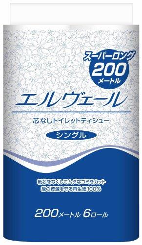 エリエール トイレットペーパー エルヴェール 200m×6ロール シングル 芯なし・・・
