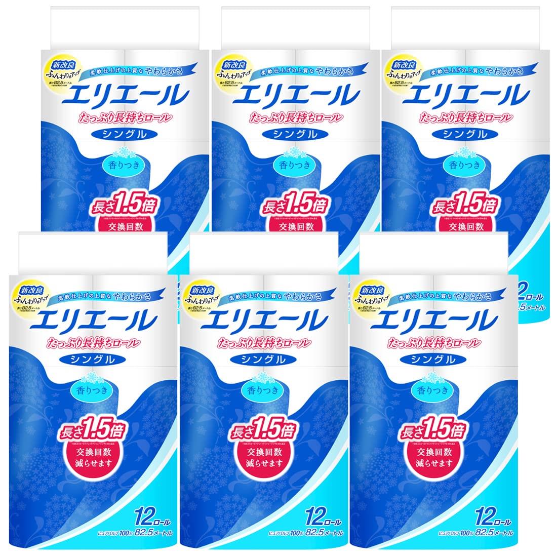 エリエール トイレットペーパー たっぷり長持ち 82.5m×72ロール(12ロール×6パック) シン・・・