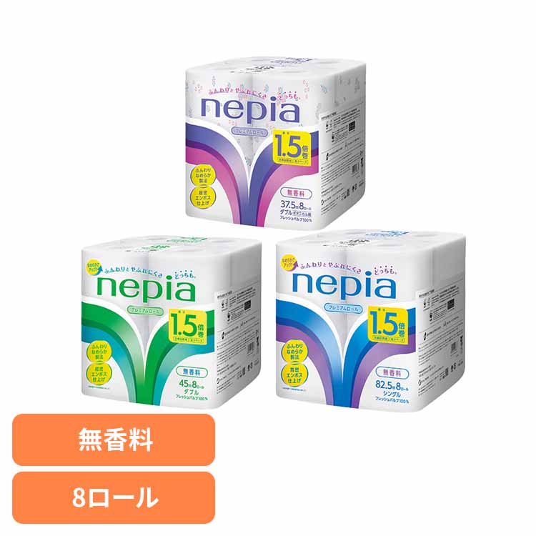 パルプ100% nepia ネピア プレミアム トイレット シングル/ダブル 無香料 8ロール まとめ買い トイレットペーパー 王子ネピア
