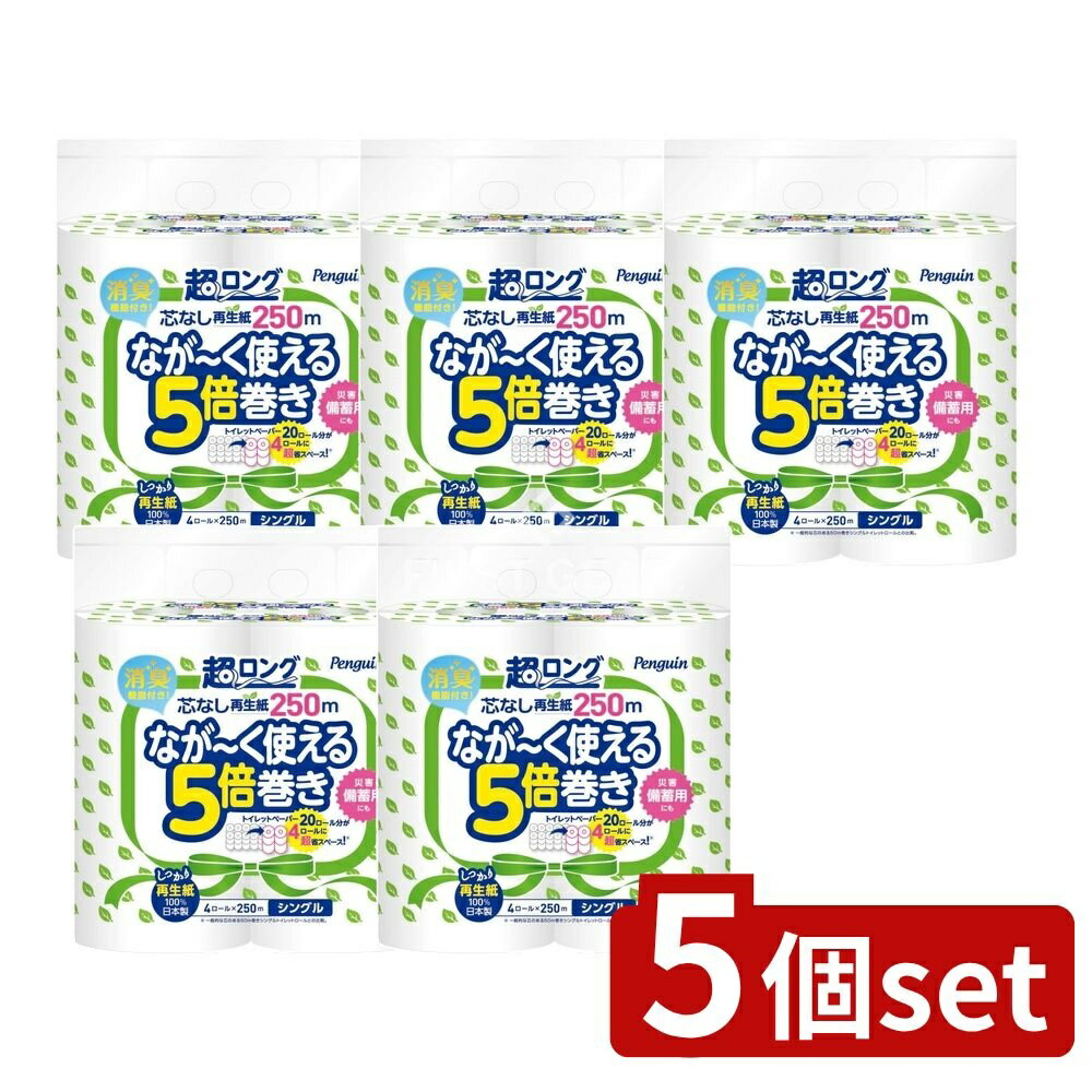 【5個セット】 丸富製紙 ペンギン芯なし超ロングパルプ250M4RS 備蓄 日用品 パック 無香料 ・・・