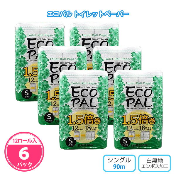 エコパル トイレットペーパー 12ロール×6パック まとめ買い シングル 日本製 無香料 日用品 消・・・