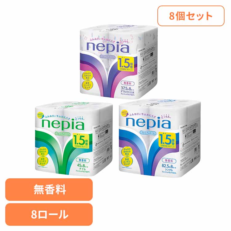 パルプ100% nepia ネピア プレミアム トイレット シングル/ダブル 無香料 8ロール まとめ買い トイレットペーパー 王子ネピア