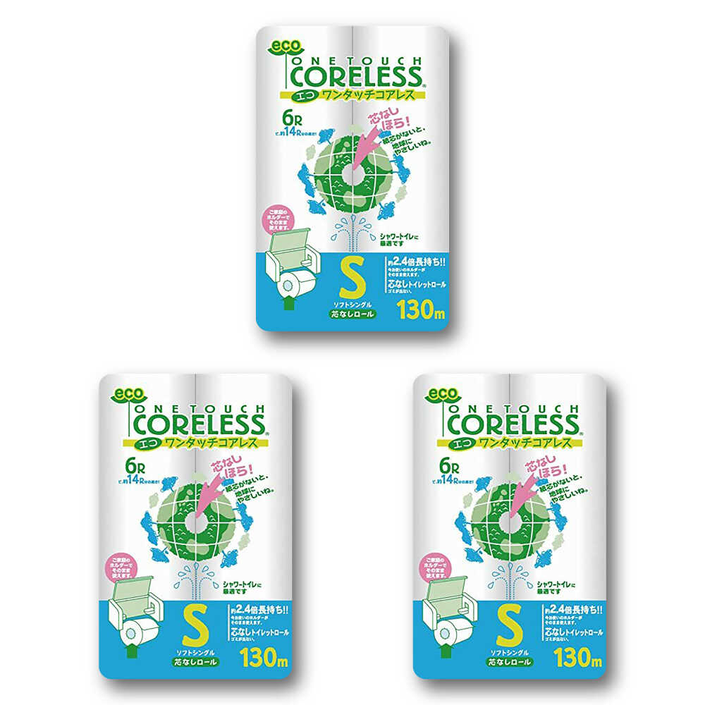 取り換え&買いに行く手間が省ける♪ 芯なし&6ロールパック [タイプ:シングル] [長さ130m] [ビニールパック] [芯:なし] [ミシン目:あり] 普通幅] [2〜2.6倍長持ち]