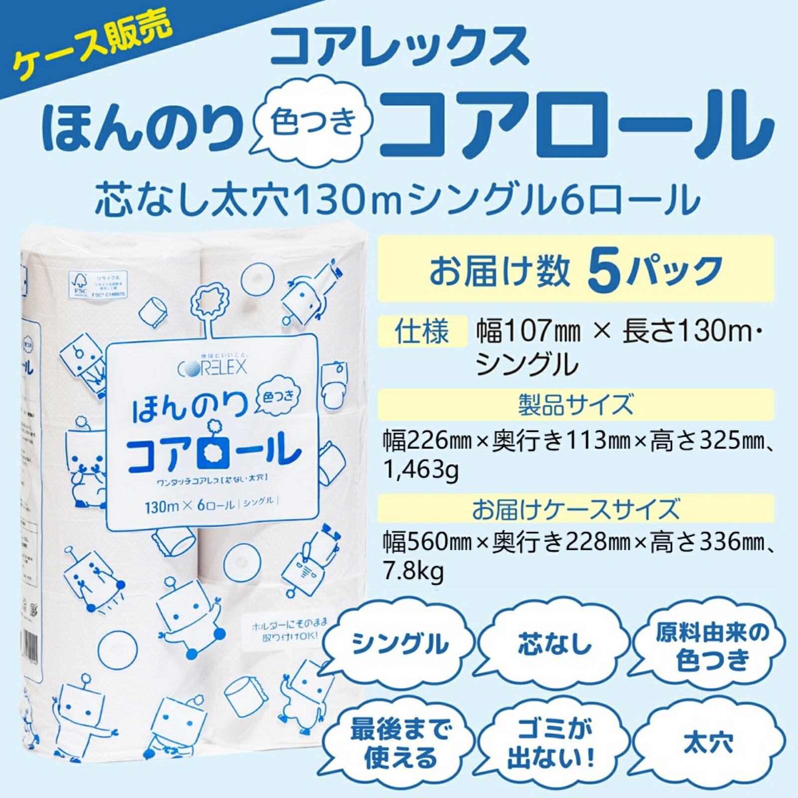【最安値に挑戦中!】 トイレットペーパー 色つき コアロール シングル 芯なし 業務用 130m 3・・・