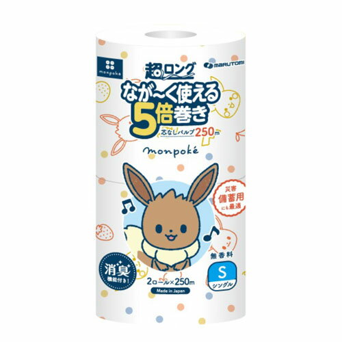 モンポケ トイレットペーパー ポケモン 超ロング 5倍巻き シングル 250m パルプ100% 無香料 消臭機能 FSC認証 芯なし 備蓄用 防災用
