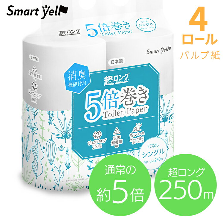 トイレットペーパー シングル 5倍巻き 芯なし アイリスプラザ スマートエール パルプ 250m トイレットロール 国産
