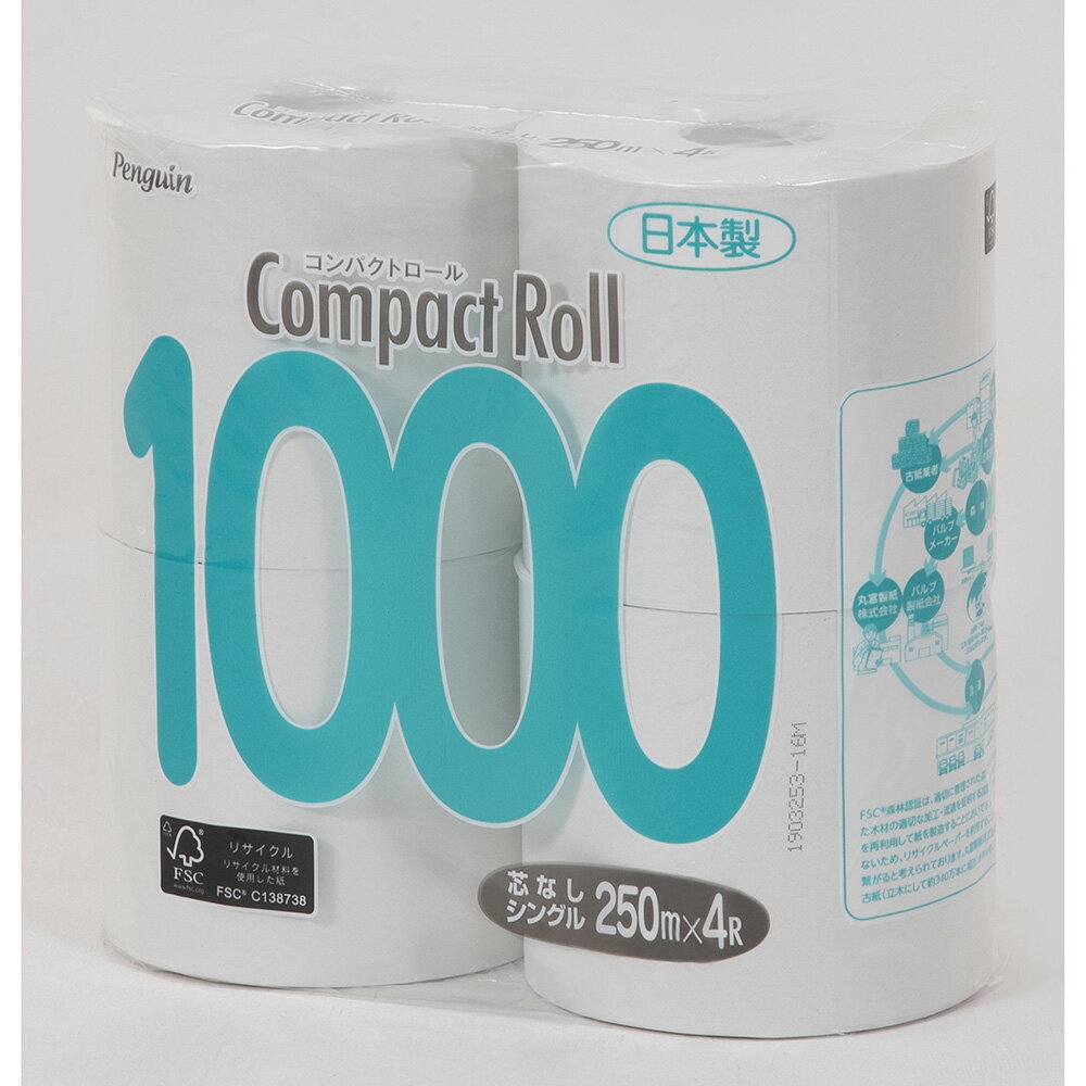 (まとめ) 丸富製紙トイレットペーパー ペンギン 5倍巻き パルプ シングル 芯なし 250m 1パ・・・