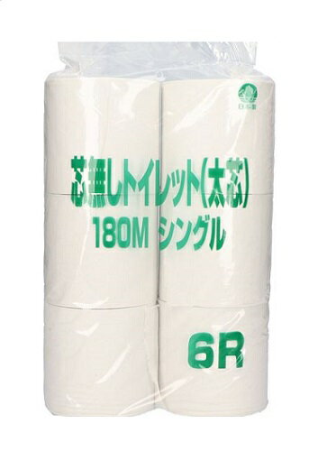 【単品6個セット】 業務用芯なしトイレットペーパー180mシングル6R(代引不可)【送料無料】・・・