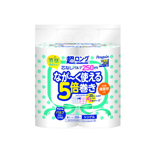 トイレットペーパー ペンギン 芯なし 超ロングパルプ シングル(250m×4ロール)×8個※取り寄せ・・・