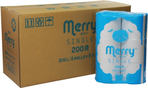 MERRY(メリー) 新橋製紙 トイレットペーパー シングル 芯なし長さ4倍巻 200m 6ロール×・・・