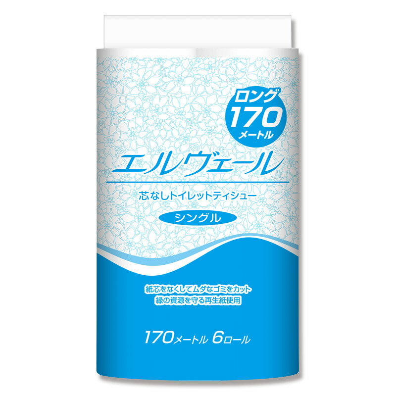エルヴェール トイレットペーパー 芯なしシングル 170m 6ロール入・・・