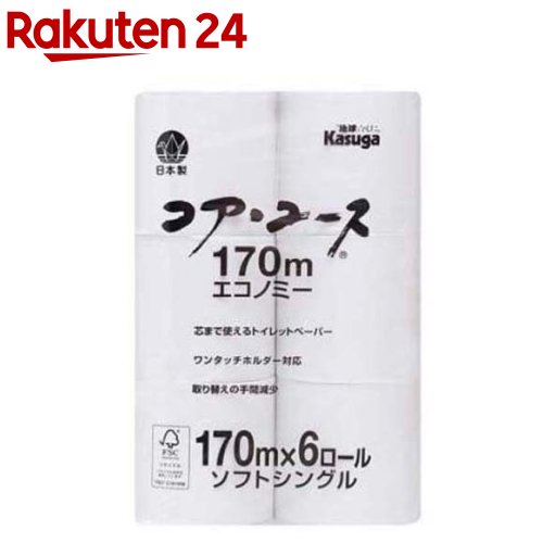 トイレットペーパー 芯なし シングル 170m 6ロール コアレス 再生紙 3.4倍 備蓄 まとめ買い