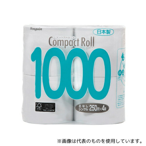 丸富製紙 ペンギン 芯なし 超ロング250m 再生紙 トイレットペーパー シングル 4ロールX4パッ・・・