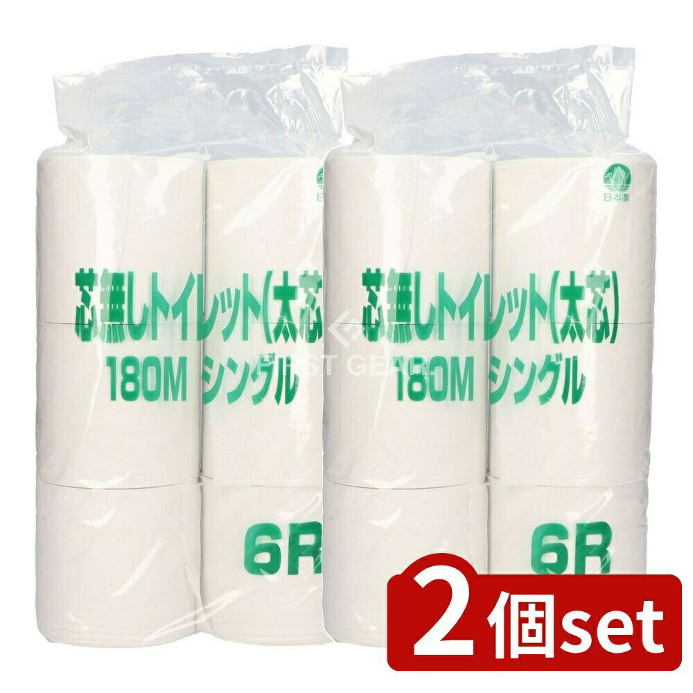 【単品2個セット】 業務用芯なしトイレットペーパー180mシングル6R(代引不可)【送料無料】・・・