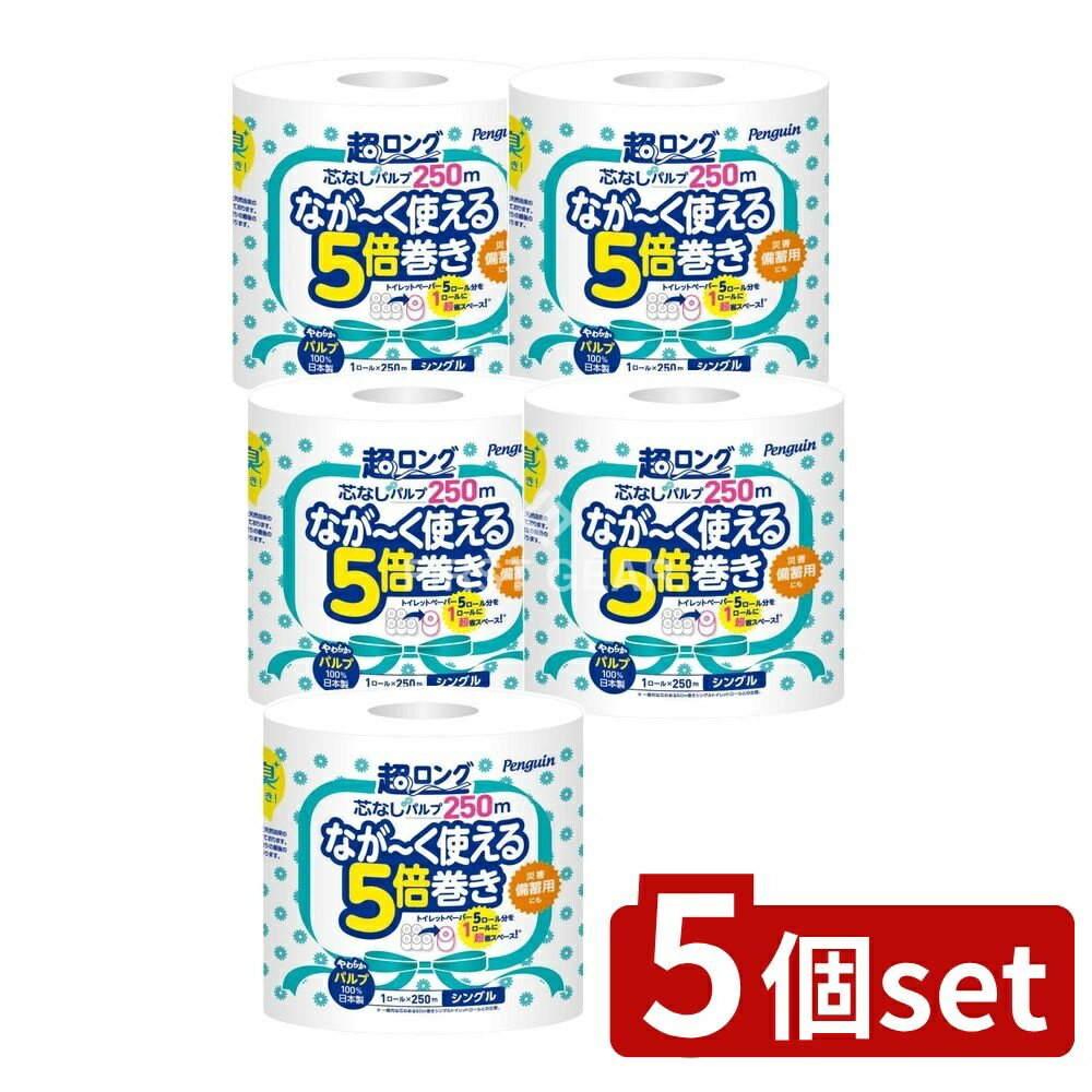 丸富製紙 ペンギン 芯なし 5倍巻き 超ロングパルプ 6ロール×250m シングル トイレットペーパ・・・
