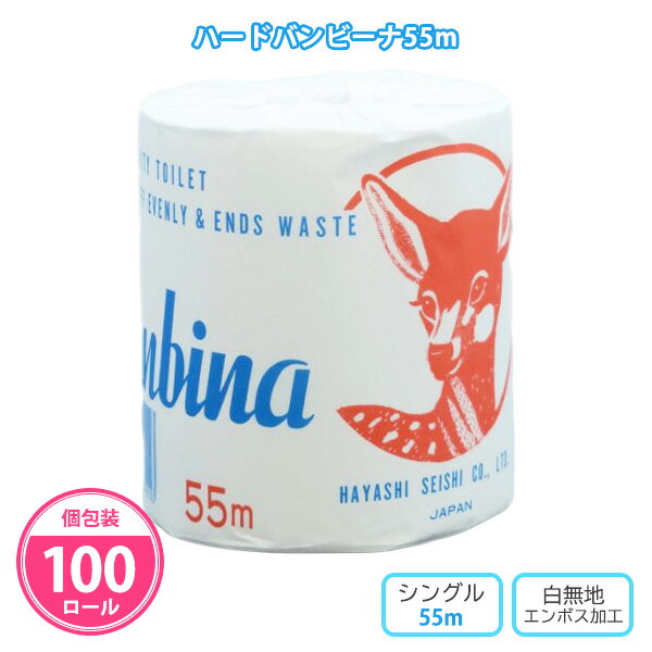 トイレットペーパー ハードバンビーナ55m 100個 まとめ買い 個包装 再生紙100% 白無地 ミ・・・