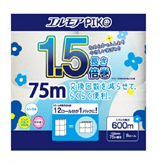 【単品8個】カミ商事 エルモアピコ 1.5倍巻 8R シングル 75m 8個 トイレットペーパー ふ・・・