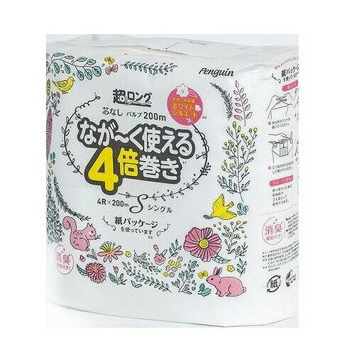 【単品6個セット】 丸富製紙 ペンギン超ロングパルプ4倍巻き4ロール シングル(代引不可)【送料無料・・・
