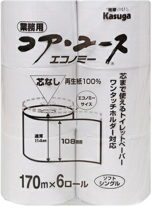 芯なし・トイレットペーパー・コアユース・業務用・太芯・170m・6ロール・まとめ買い・送料無料