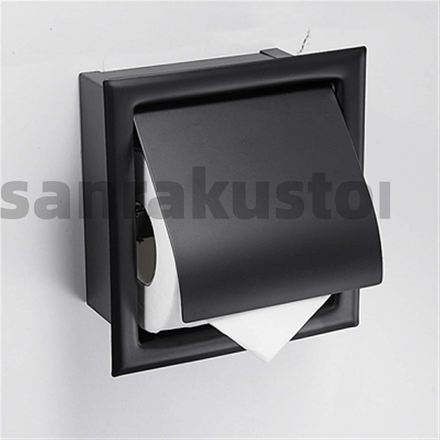 トイレットペーパーホルダー 黒埋め込みトイレティッシュペーパーホルダー ステンレス鋼 壁 紙ホルダー・・・