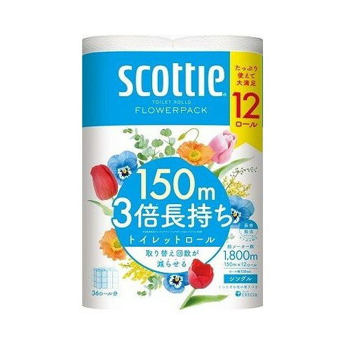 【送料無料】【単品2個セット】 スコッティ フラワーパック 3倍長持ち 12ロール シングル 日本製紙クレシア