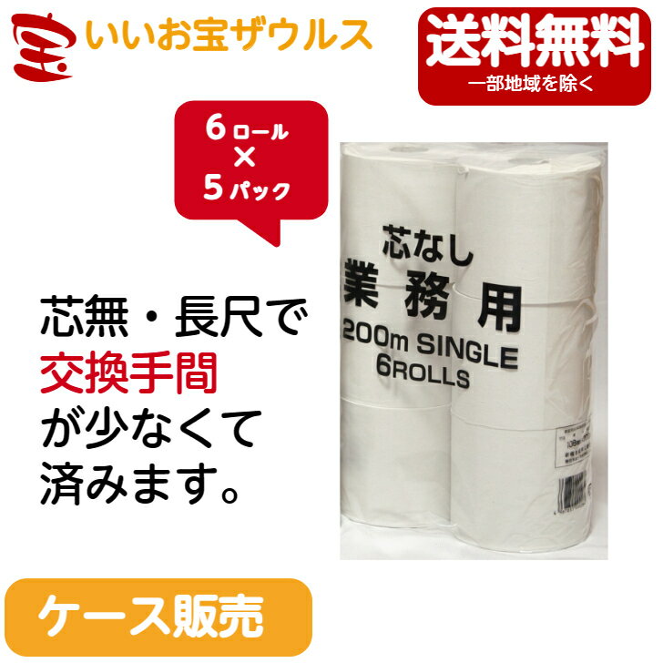 送料無料 トイレットペーパー 30ロール芯なし業務用 200m 6R×5パック 【売れ筋】 ケース販・・・