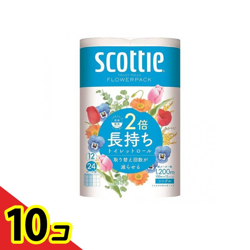 【送料無料!(地域限定)】スコッティ フラワーパック 2倍長持ち シングル 12ロール 10個セット・・・