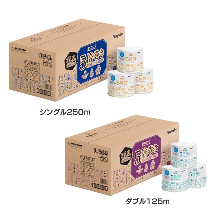 トイレットペーパー トイレットロール 芯なし 5倍巻 ペンギン パルプ100% 国産 FSC認証 超ロング シングル