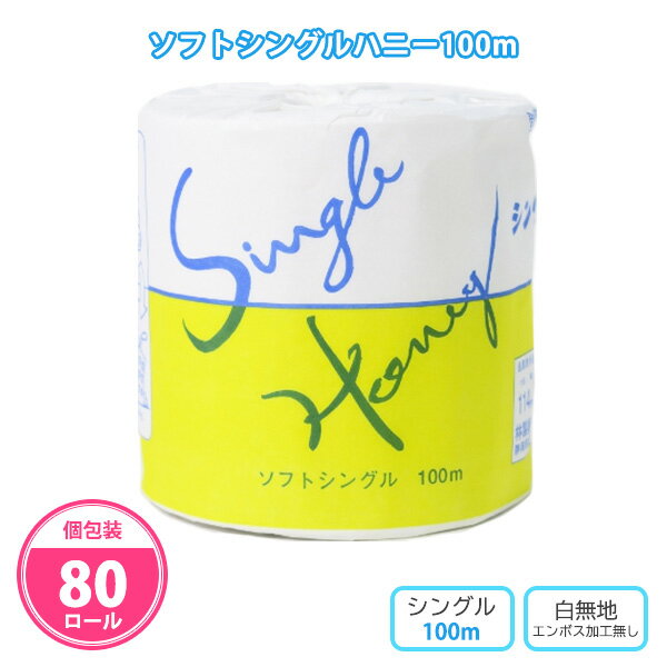 トイレットペーパー 「ソフトシングルハニー100m」 80個 まとめ買い 個包装 再生紙100% 白・・・