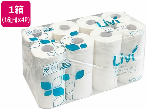 ユニバーサルペーパー リビィトイレットペーパー シングル 100m 16ロール 4P 業務用パック ・・・