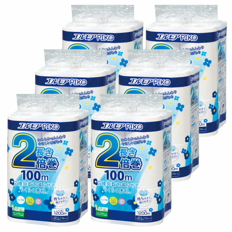 【6個セット】トイレットペーパー 2倍巻 香り付き エルモア ピコ 2倍巻き 12ロール シングル ・・・