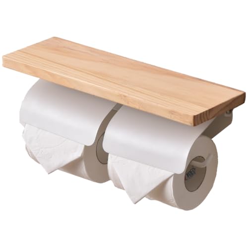 トイレットペーパーホルダー おしゃれ 2連 棚板付き 天然木 木製 完成品 トイレ用品 トイレ収納 デザイン カジュアル ホルダー ダブル トイレットペーパー シンプル