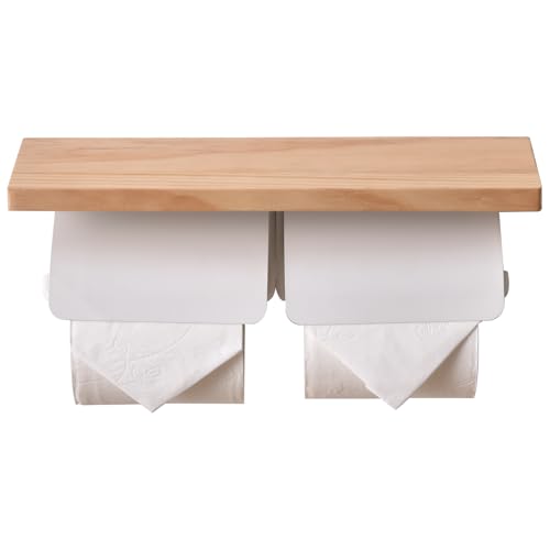 ヲンシウトイレットペーパーホルダー天然木棚付き片手で切れるおしゃれ2連シングルダブル2倍巻き3倍巻き・・・