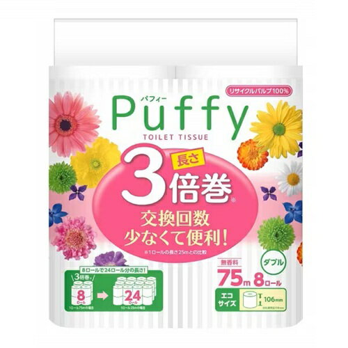 大王製紙 パフィー 3倍巻 8R ダブル トイレットペーパー ダブルタイプ 8ロール 大容量 買い置・・・