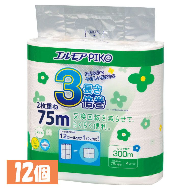 【12個セット】トイレットペーパー 香り付き 日本製 エルモア ピコ 3倍巻き 4ロール ダブル 7・・・