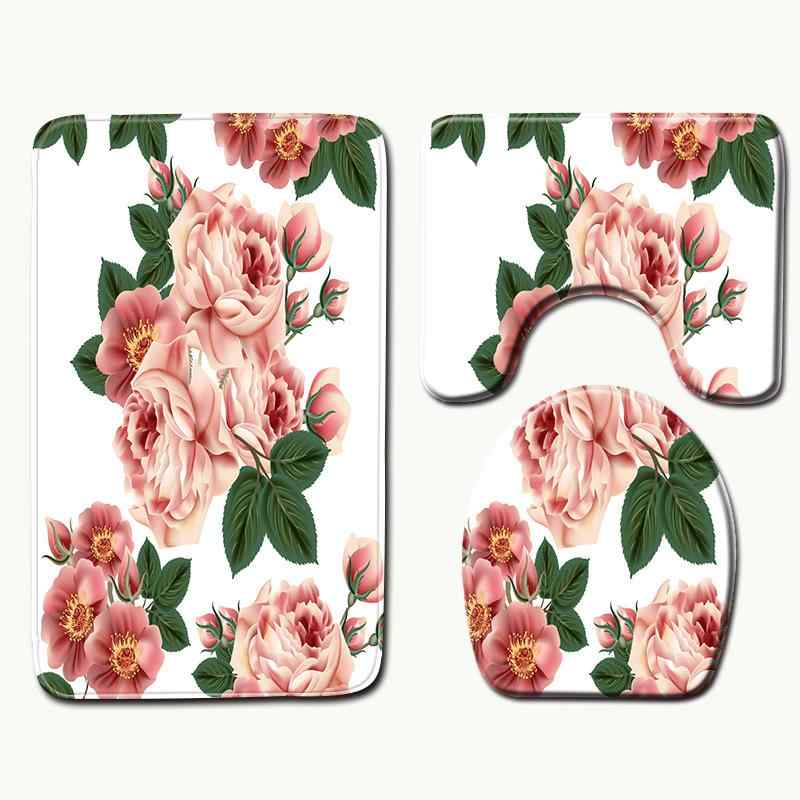 フロアマット 洗える 丸洗いOK 滑り止め 牡丹柄 3点セット トイレマット バスマット 玄関マット・・・