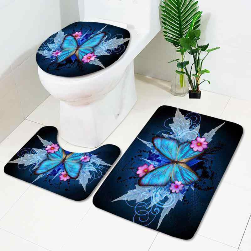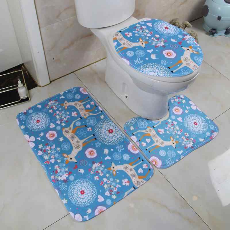 トイレマット 吸水速乾 滑り止め フランネル ポリエステル製 エルク柄 プリント バスルーム 3点セ・・・