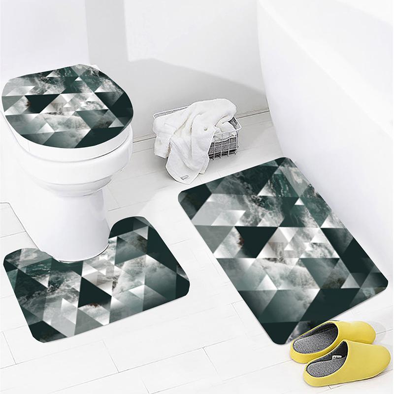 浴室セット 防水浴カーテン 防滑トイレットマット U字型浴マット 便座カバー 黒 迷彩柄 ヘラジカ柄・・・