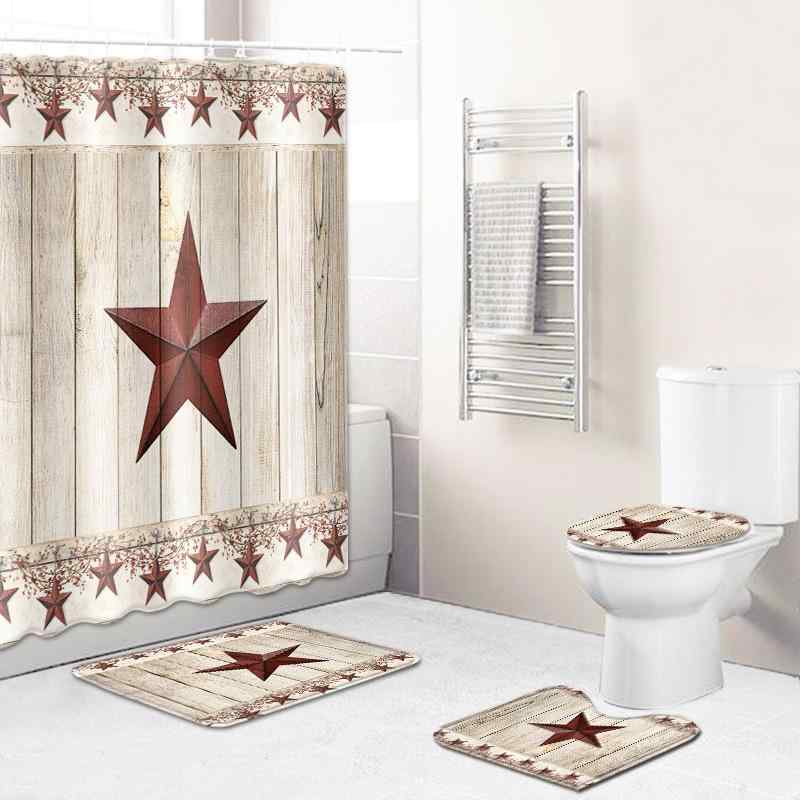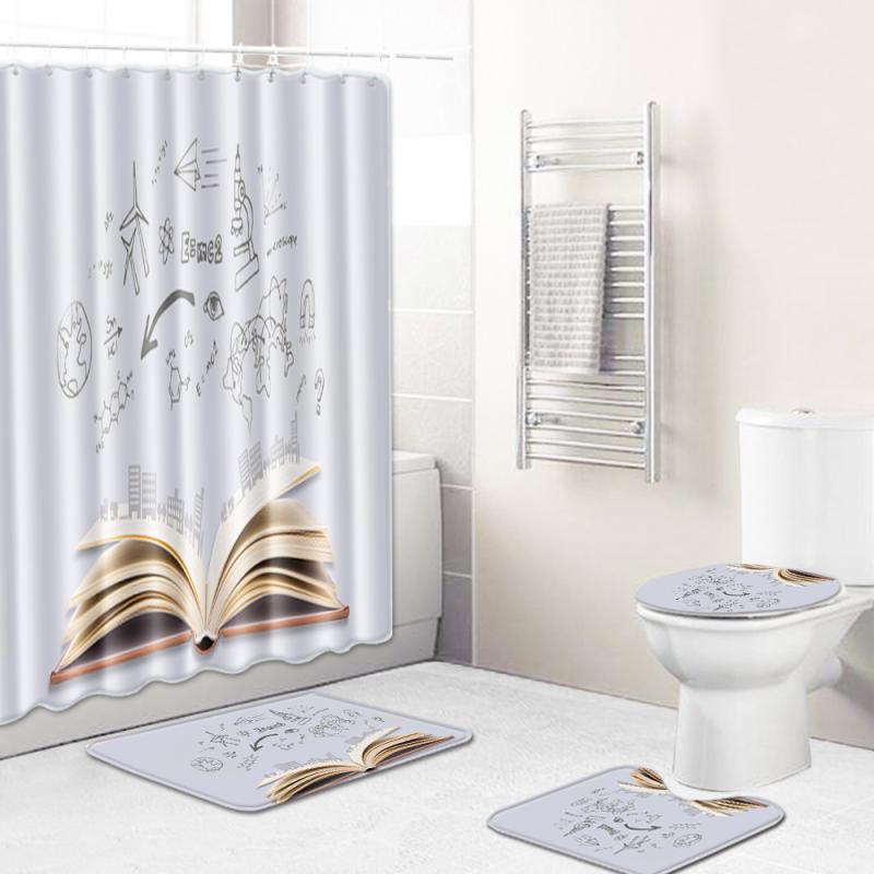 トイレタリー 4点セット シャワーカーテン トイレマット フタカバー 足元ラグ 洗濯可能 吸水速乾 ・・・