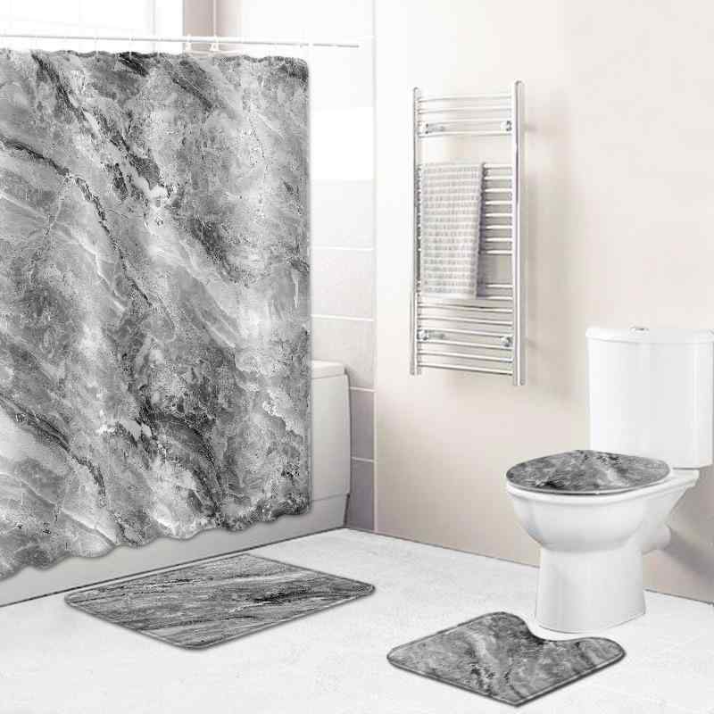 浴室セット モダン おしゃれ 高級感 大理石柄 防水 シャワーカーテン 吸水 速乾 滑り止め フロア・・・
