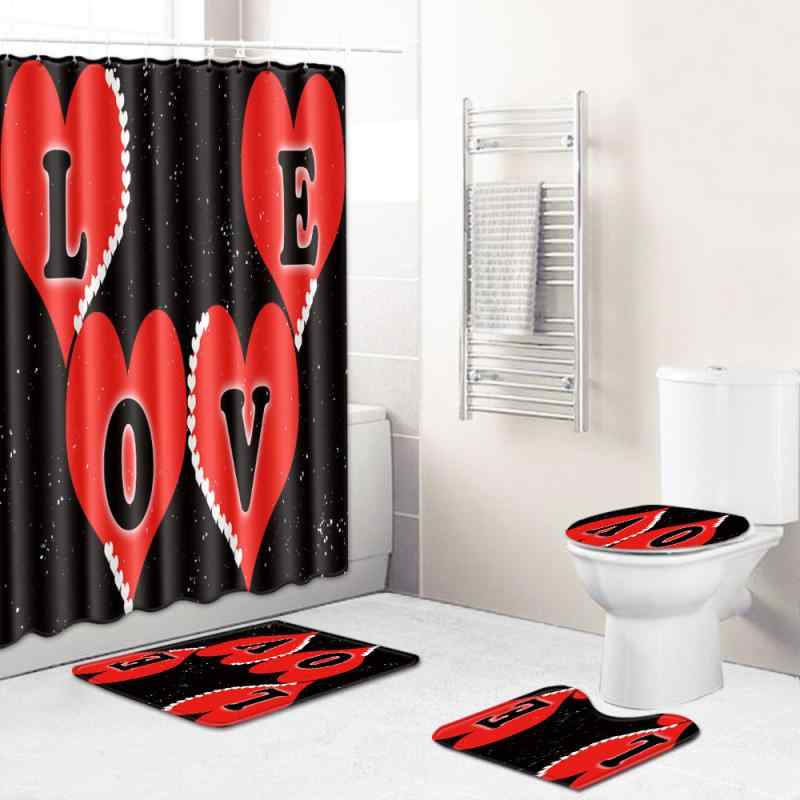 バスルーム 4点セット トイレマット バスマット シャワーカーテン 便座カバー ポリエステル製 洗え・・・