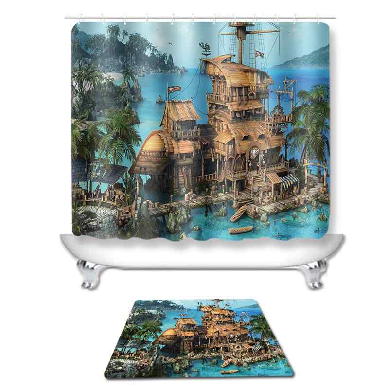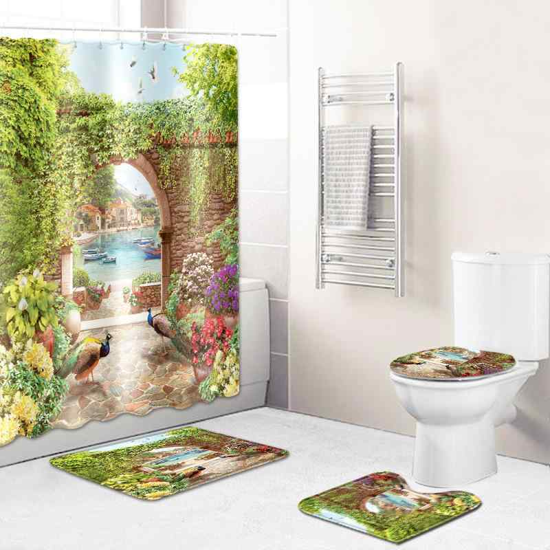 シャワーカーテン バスルーム ポリエステル 速乾 洗える 壁面 風景プリント バスマット トイレマッ・・・