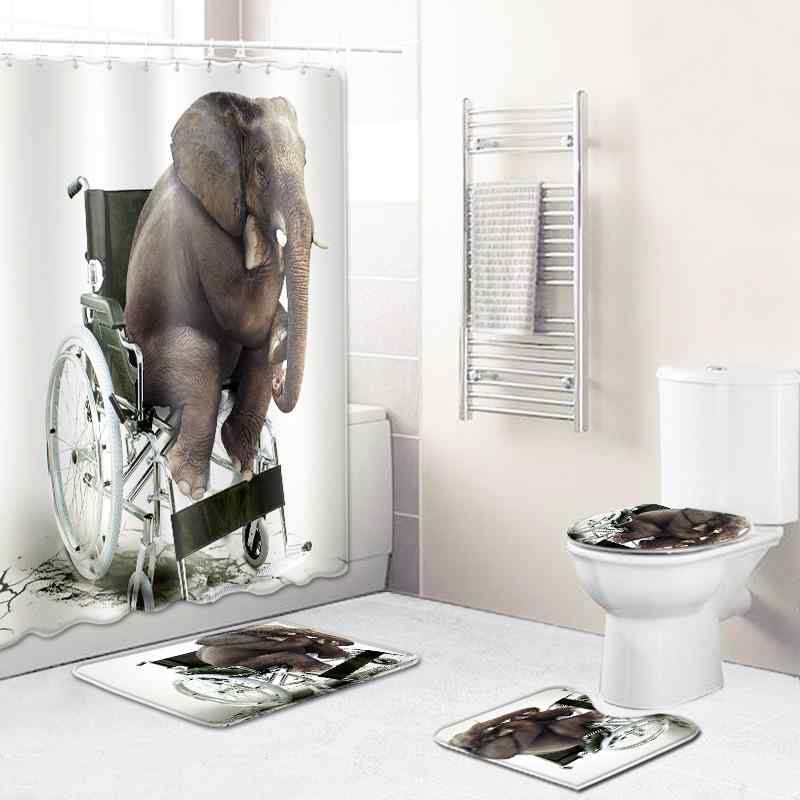 バスルームセット シャワーカーテン 浴室マット トイレマット フタカバー 3D ゾウ柄 アニマル 防・・・