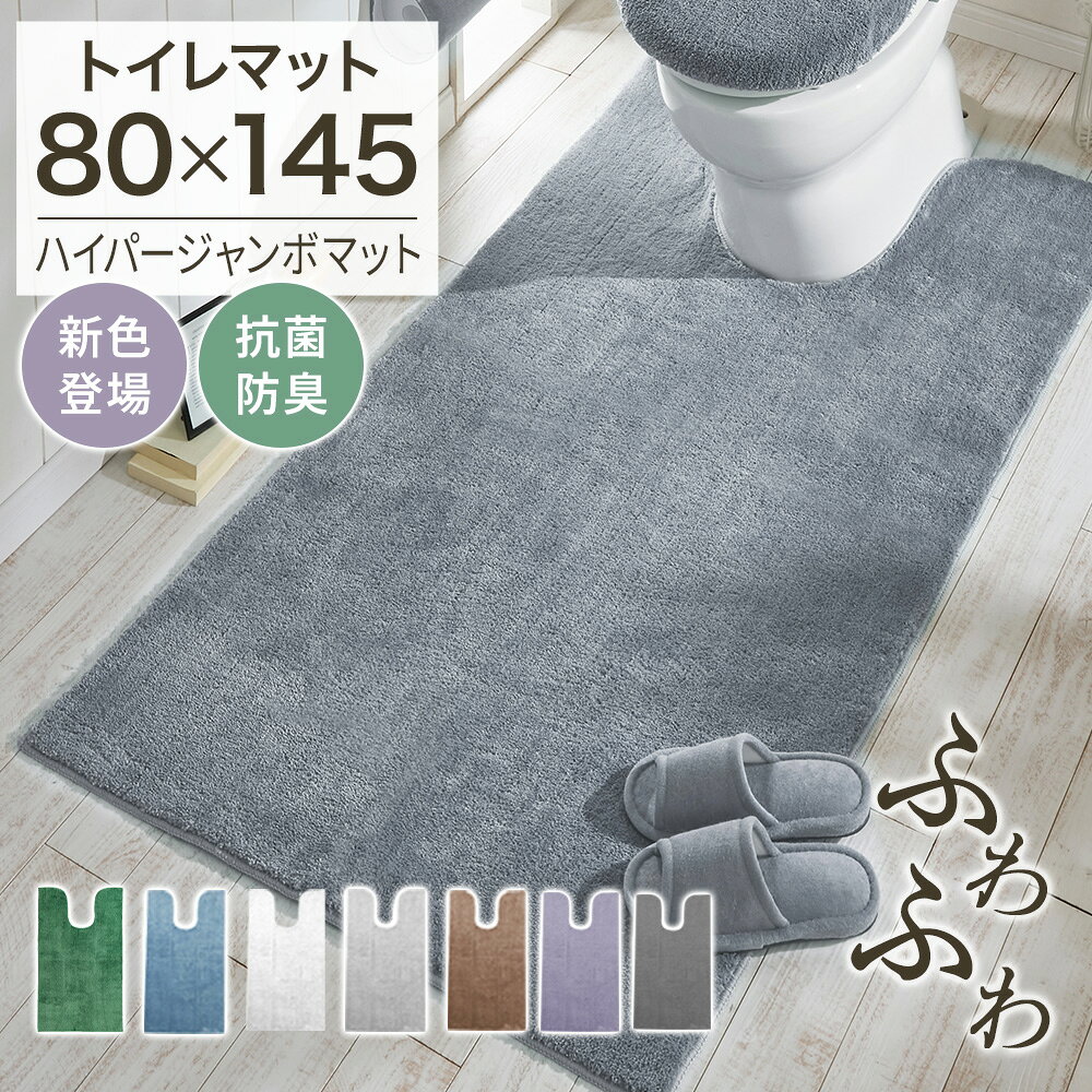 トイレマット 80×145 グレー ホワイト 白 ブルー パープル 紫 ラベンダー シンプル モダン 北欧 韓国 韓国インテリア かわいい 可愛い 無地 フタカバー スリッパ ペーパーホルダーカバー