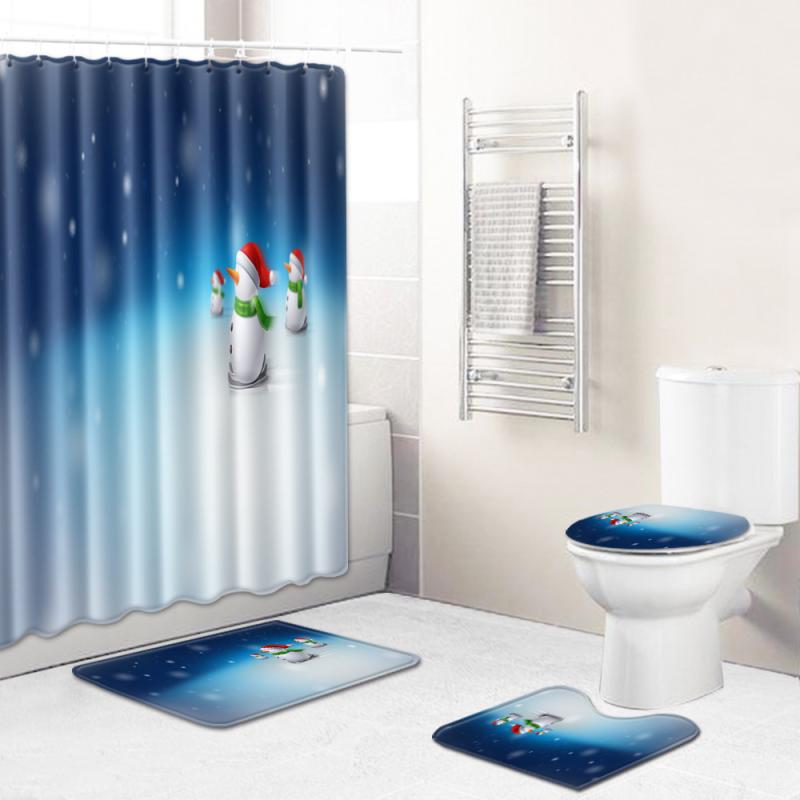 シャワーカーテン 丸洗いOK クリスマス柄 バスルーム 4点セット トイレマット トイレ蓋カバー バ・・・